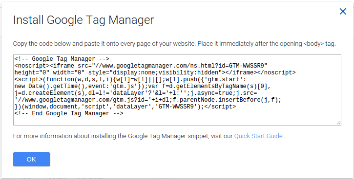 <body>tag. - That’s it! You installed GTM on your website! - Please continue with the steps described in 2.1. Google Tag Manager